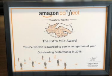 ‘The Extra Mile Award’ from Amazon for Outstanding Performance